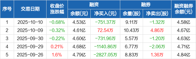 春秋航空:融资净偿还751.37万元,融资余额4.53亿元(10-10)