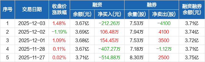 春秋航空:融资净偿还212.26万元,融资余额3.67亿元(12-03)