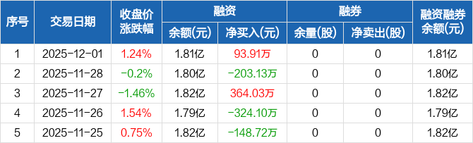 道生天合:融资净买入93.91万元,融资余额1.81亿元(12-01)
