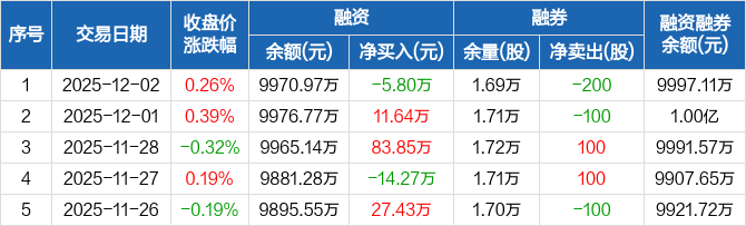 永兴股份:融资净偿还5.8万元,融资余额9970.97万元(12-02)