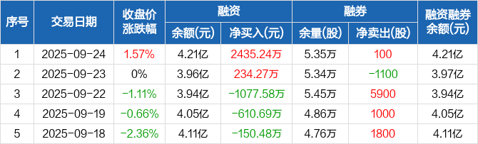 中信金属:融资余额4.21亿元,创近一年新高(09-24)