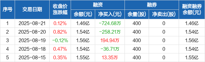 江盐集团:融资净偿还724.68万元,融资余额1.46亿元(08-21)