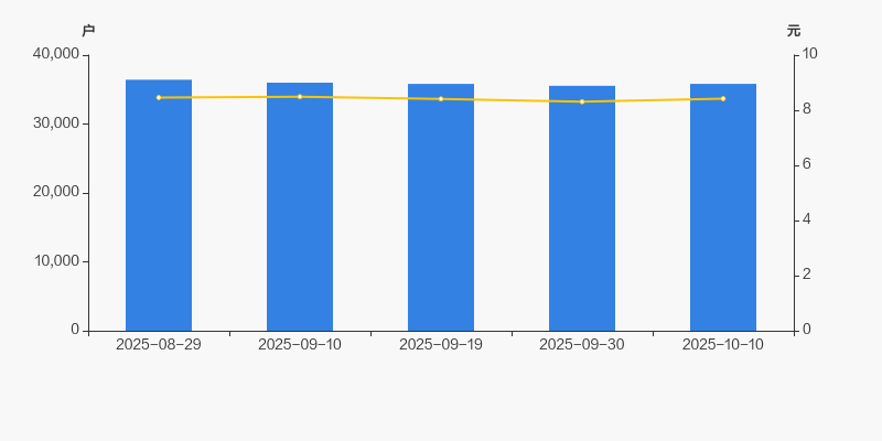 2025年8月29日至今,公司股东户数有所下降,区间跌幅为1.65%。2025年8月29日至2025年10月10日区间股价下降0.47%。