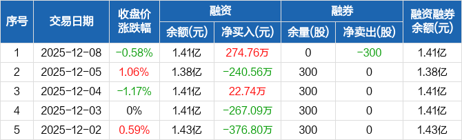 江盐集团:融资净买入274.76万元,融资余额1.41亿元(12-08)