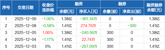 江盐集团:融资净偿还361.34万元,融资余额1.38亿元(12-09)