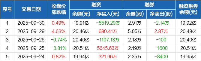 中信建投:融资净偿还5519.29万元,融资余额19.91亿元(09-30)
