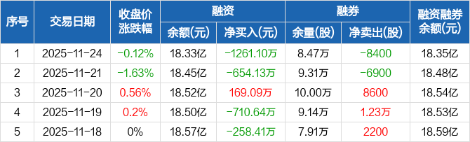 中信建投:融资净偿还1261.1万元,融资余额18.33亿元(11-24)