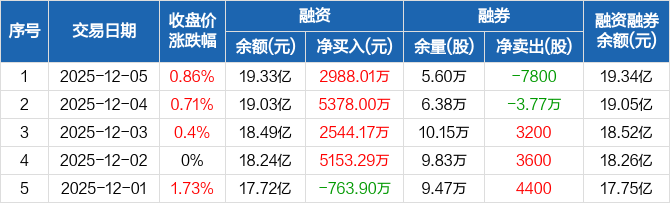 中信建投:连续4日融资净买入累计1.61亿元(12-05)