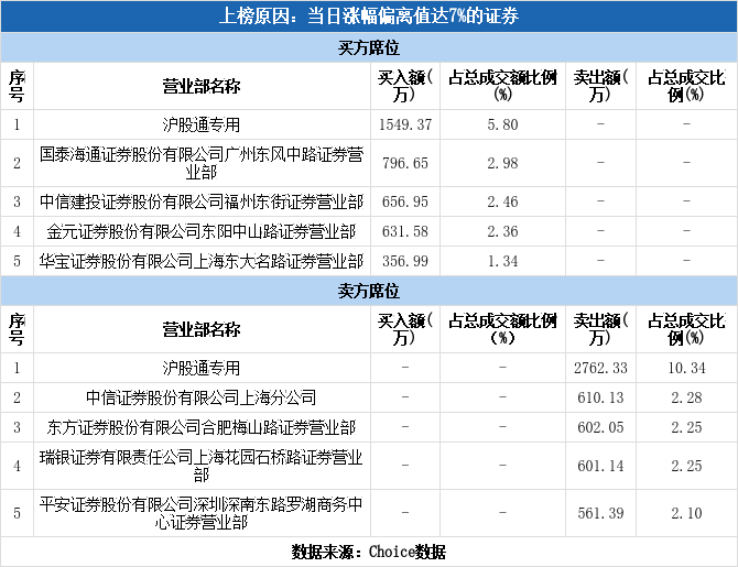 沪股通现身龙虎榜,中铝国际涨停(10-22)