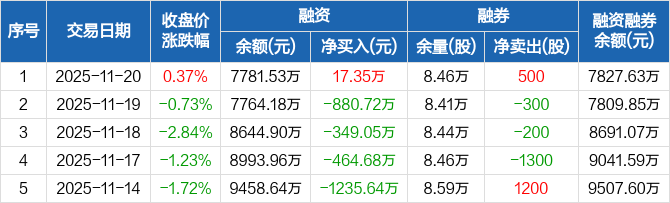 中铝国际:融资净买入17.35万元,融资余额7781.53万元(11-20)