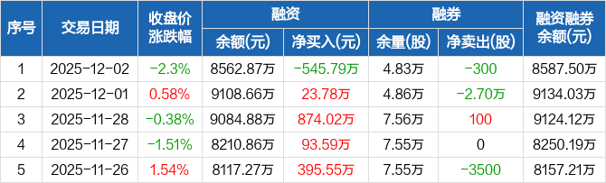 中铝国际:融资净偿还545.79万元,融资余额8562.87万元(12-02)