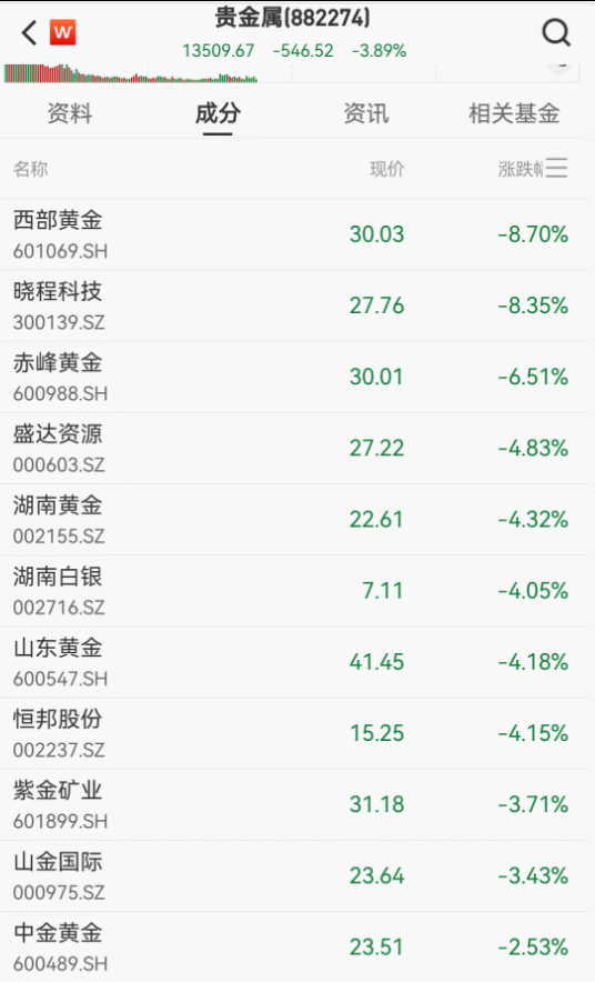 金价失守4000美元!AH黄金股大跌,西部黄金跌8%,大唐黄金跌10%