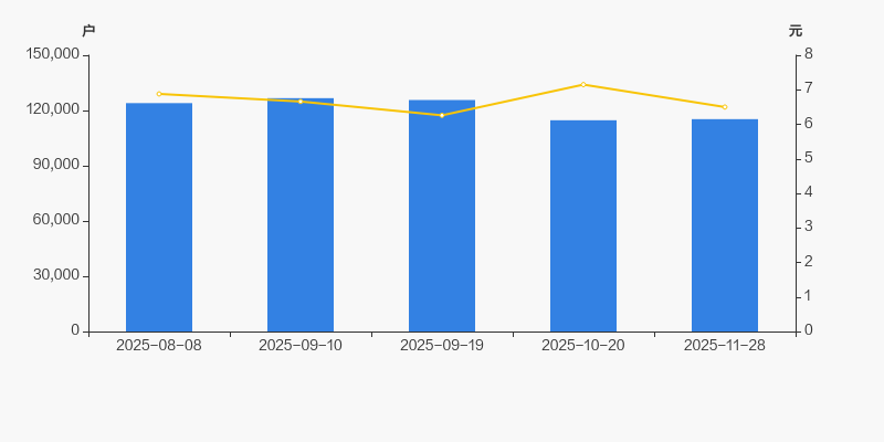 2025年8月8日至今,公司股东户数有所下降,区间跌幅为7.02%。2025年8月8日至2025年11月28日区间股价下降5.52%。