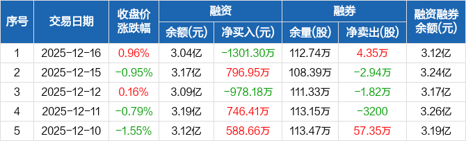 渝农商行:融资净偿还1301.3万元,融资余额3.04亿元(12-16)