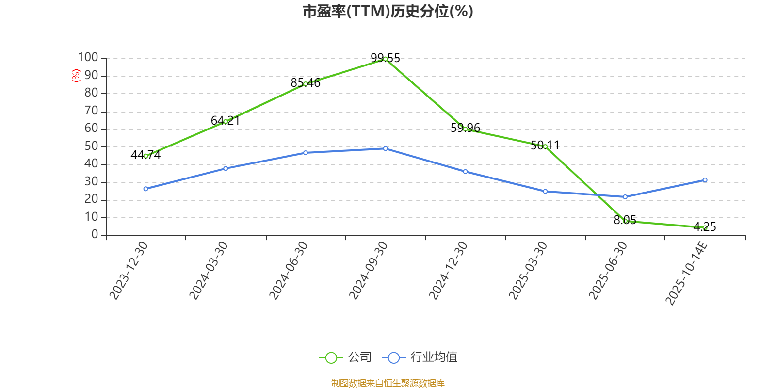 市盈率、市净率为负时,不显示当期分位数,会导致折线图中断。