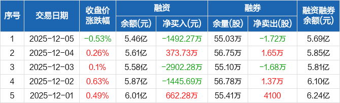 中国神华:融资净偿还1492.27万元,融资余额5.46亿元(12-05)
