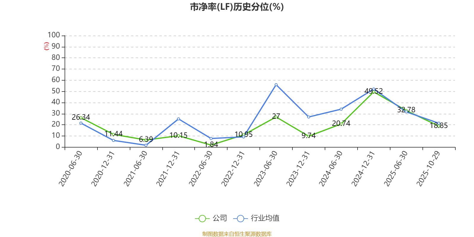 市盈率、市净率为负时,不显示当期分位数,会导致折线图中断。