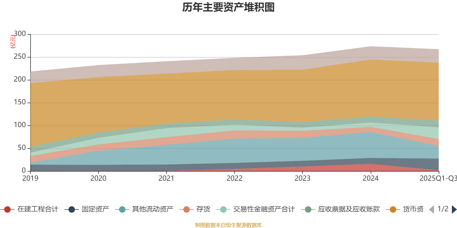 资产重大变化方面,截至2025年三季度末,公司其他流动资产较上年末减少51.64%,占公司总资产比重下降10.51个百分点;交易性金融资产合计较上年末增加174.53%,占公司总资产比重上升6.19个百分点;在建工程合计较上年末减少89%,占公司总资产比重下降5.07个百分点;固定资产较上年末增加96.6%,占公司总资产比重上升4.8个百分点。