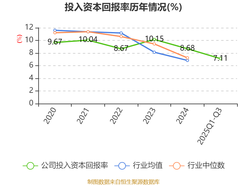 盈利能力方面, 2025年前三季度公司加权平均净资产收益率为7.45%,同比上升1.22个百分点。公司2025年前三季度投入资本回报率为7.11%,较上年同期上升1个百分点。