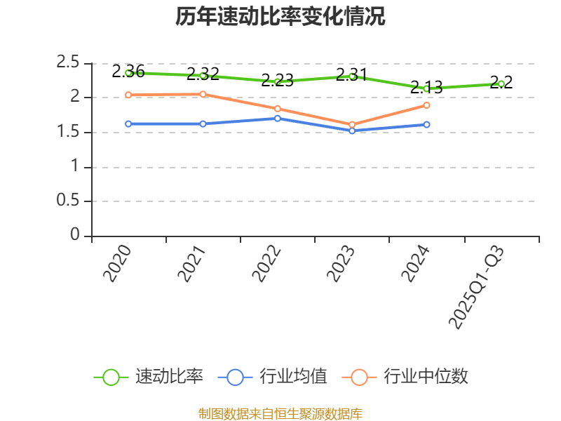 2025年前三季度,公司流动比率为2.37,速动比率为2.2。