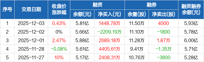 恒立液压:融资净买入1448.78万元,融资余额5.81亿元(12-03)