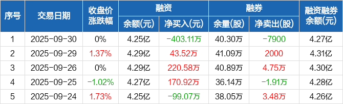 中国一重:融资净偿还403.11万元,融资余额4.25亿元(09-30)