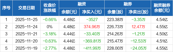 中国一重:融资净偿还3527元,融资余额4.48亿元(11-25)