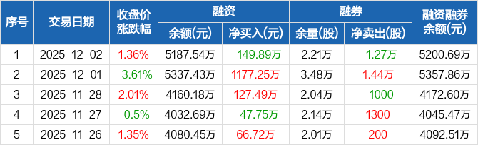 四川成渝:融资净偿还149.89万元,融资余额5187.54万元(12-02)