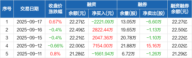 中国化学:融资净偿还2221.09万元,融资余额22.27亿元(09-17)