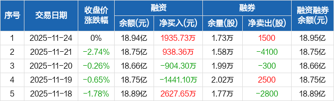 中国化学:融资净买入1935.73万元,融资余额18.94亿元(11-24)