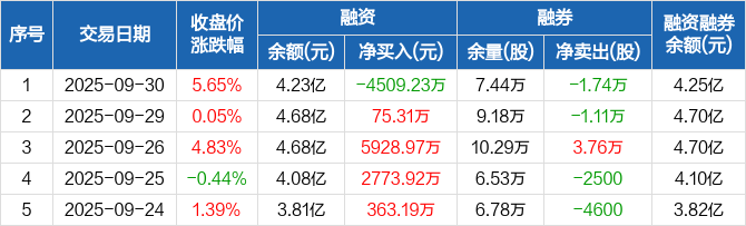 四方股份:融资净偿还4509.23万元,创近一年新高(09-30)