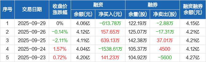 常熟银行:融资净偿还613.78万元,融资余额4.06亿元(09-29)