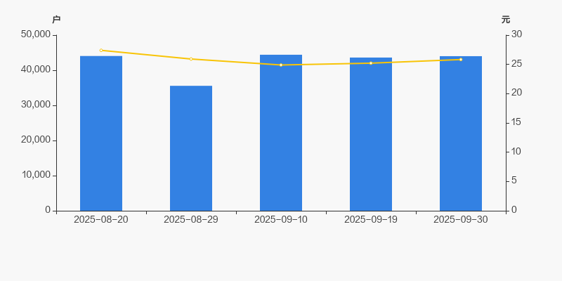 2025年8月20日至今,公司股东户数有所下降,区间跌幅为0.11%。2025年8月20日至2025年9月30日区间股价下降5.73%。