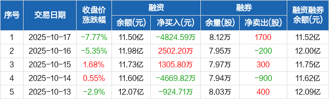 博威合金:融资净偿还4824.59万元,融资余额11.5亿元(10-17)