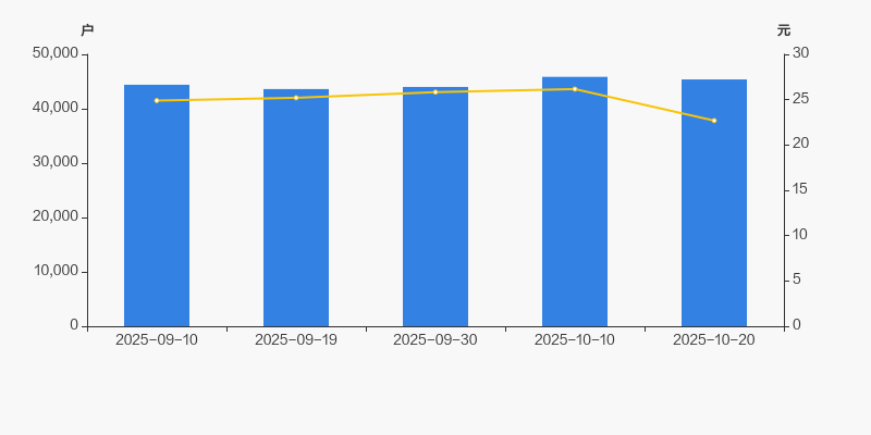 2025年9月10日至今,公司股东户数有所增长,区间涨幅为2.20%。2025年9月10日至2025年10月20日区间股价下降8.88%。