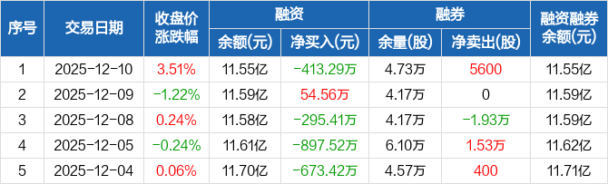 东航物流:融资净偿还413.29万元,融资余额11.55亿元(12-10)