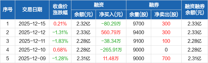 三角轮胎:融资净偿还80.29万元,融资余额2.32亿元(12-15)