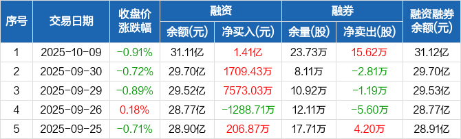 北京银行:融资余额31.11亿元,创近一年新高(10-09)