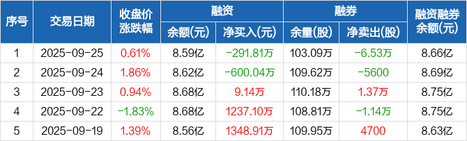 中国西电:融资净偿还291.81万元,融资余额8.59亿元(09-25)