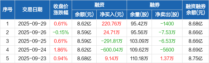 中国西电:融资净买入220.76万元,融资余额8.62亿元(09-29)