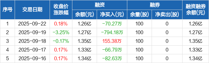 江南水务:融资净偿还70.27万元,融资余额1.26亿元(09-22)