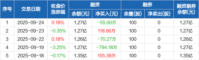 江南水务:融资净偿还55.6万元,融资余额1.27亿元(09-24)