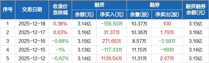上海环境:融资净偿还156.5万元,融资余额3.14亿元(12-18)