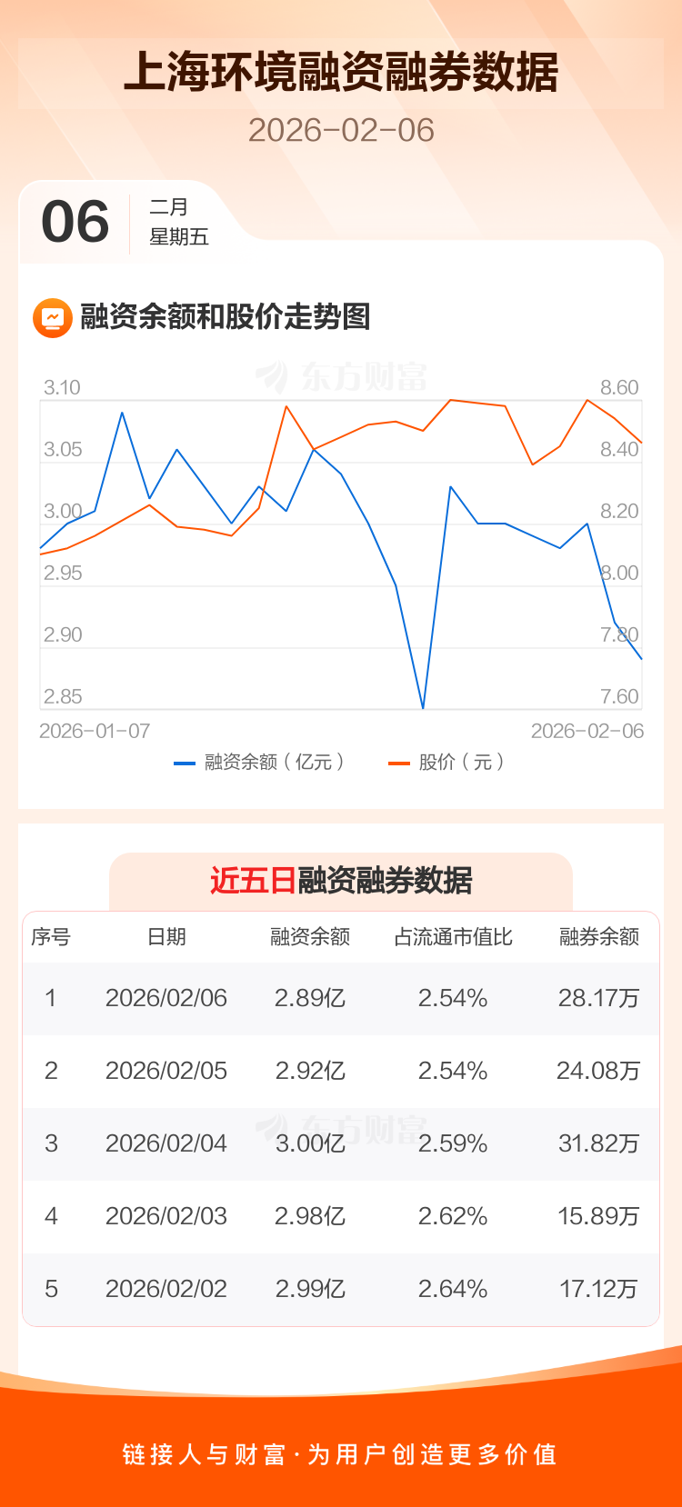 交易所最新数据显示,上海环境于2026年2月6日获融资买入1125.41万元,融资偿还1420.48万元,当日融资净偿还295.07万元。目前,该股融资余额2.89亿,占流通市值比例为2.54%。
