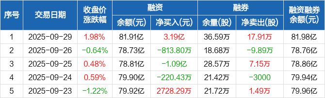 国泰海通:融资余额81.91亿元,创历史新高(09-29)