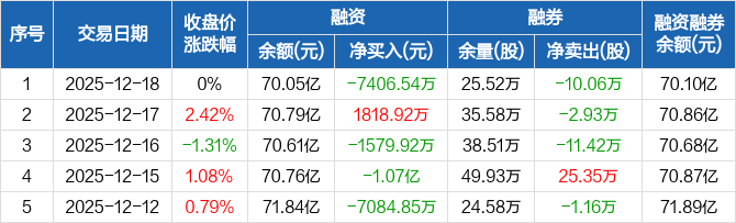 国泰海通:融资净偿还7406.54万元,融资余额70.05亿元(12-18)
