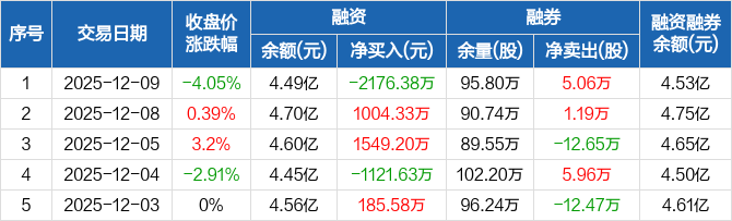 白银有色:融资净偿还2176.38万元,融资余额4.49亿元(12-09)