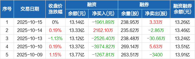 君正集团:融资净偿还1961.89万元,融资余额13.14亿元(10-15)
