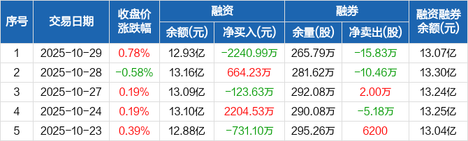 君正集团:融资净偿还2240.99万元,融资余额12.93亿元(10-29)