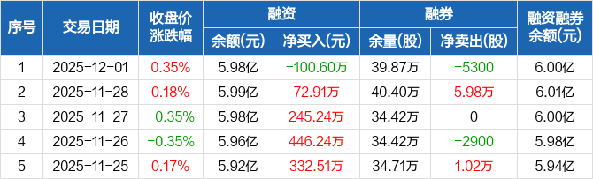 林洋能源:融资净偿还100.6万元,融资余额5.98亿元(12-01)